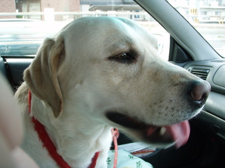 歩き疲れて「盲導犬」って、所で休んでいたら、「おとなしいわねぇ。この子は盲導犬なの?」と