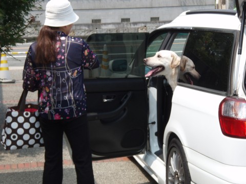 そしてお父さんが一言、「ライアン、ハウスに帰る?」と言ったら車に一目さんでした。やっぱりお家が一番。あ〜暑かった。