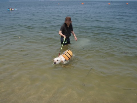 せっかく海に来たので、この前みたいに泳ぐかと思えばなかなか泳ごうとしません。
