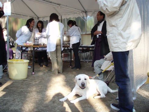 神社に着いて岡崎神主さんにご挨拶をし、境内を一周して甘酒をいただきました。しかし、ライアンはいい匂いがしたのか、「いる!いる!!」の連呼でした(^。^;)