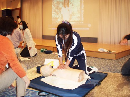 休む暇もなく「心臓マッサージとAED」を頭にたたきこみました。