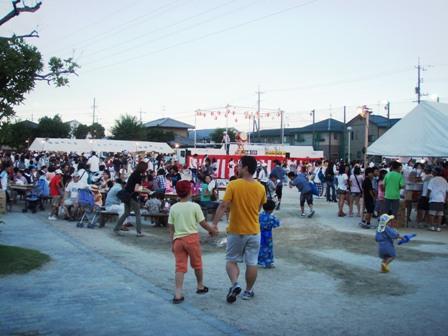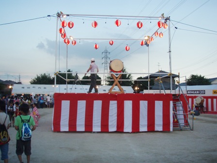 やぐら太鼓です。にぎやかなお祭り会場が出来てます。