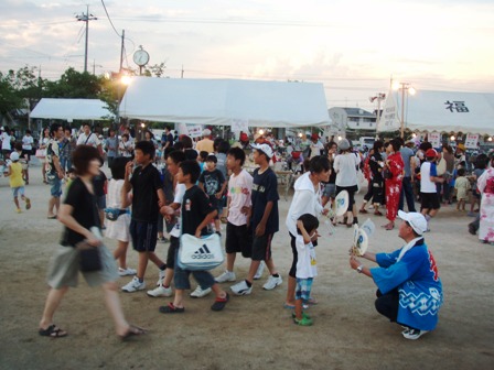 祭りもにぎやかになって、人もたくさん集まってきました。迷子にならないように気をつけないとねぇ。