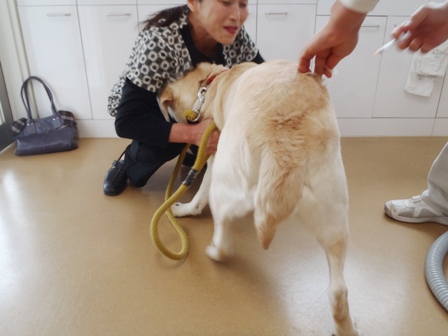 お母さんはライアンに引っ張られて、こけそうになってましたが、「コラッ!ダメよ。病院に入るよ。」と、診察室へ入りました。