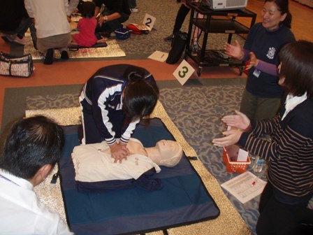 ただちに元の姿勢で胸骨圧迫を続けます。