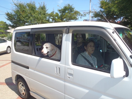 そうなんです、乗って車が動いたらいつもと違う鳴き声が始まりました。さぁ〜、大変です!!