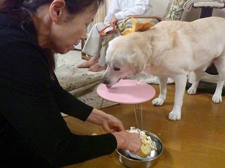 じいちゃんは、ライアンがケーキを食べるときにリードを外すだけが"お手伝い"なのです。