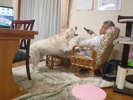 じいちゃんがいつもこの席に座っていると、ライアンはすかさず「じいちゃん遊ぼう」っと