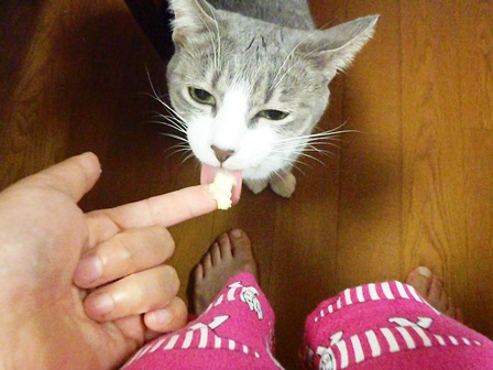 会社で見るミーちゃんとは違って、とっても甘えん坊なネコです。