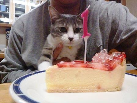 このイチコチーズケーキは私が食べて、お祝いケーキのほんの少しだけライアンにあげました。おいしかったぁ!