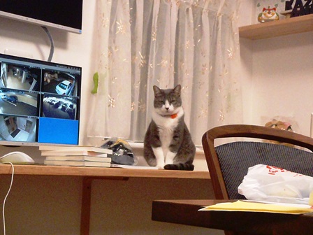 「私のゴハンはどこなの?」とミーちゃんがじっと見ていました。