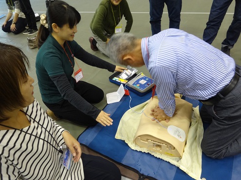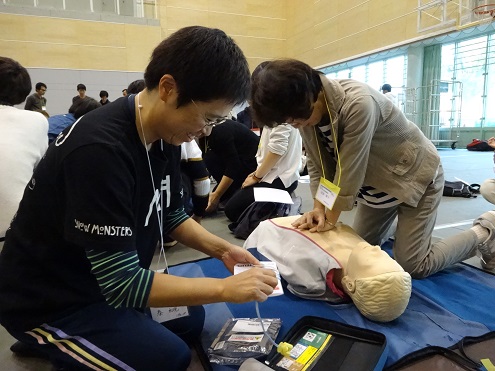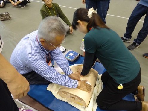 NPO救命おかやまの医師、看護師、救急救命士などのインストラクターのかたがたが、わかりやすくご指導くださいました。