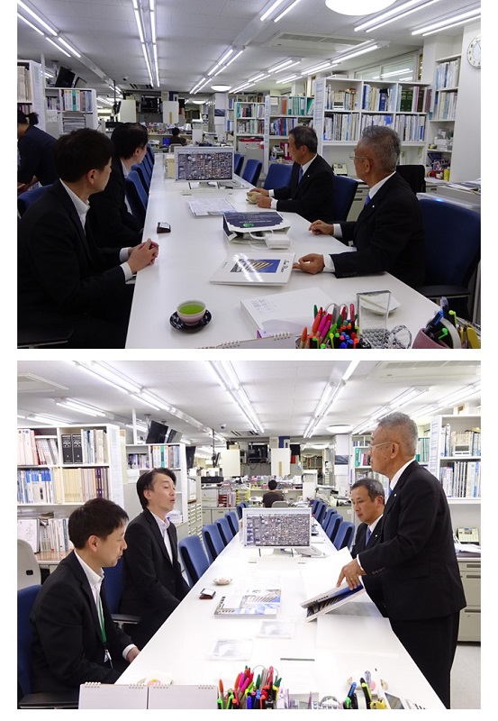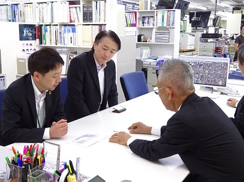 伊予銀行の頭取様がご来社の時の写真を見ていただきました。