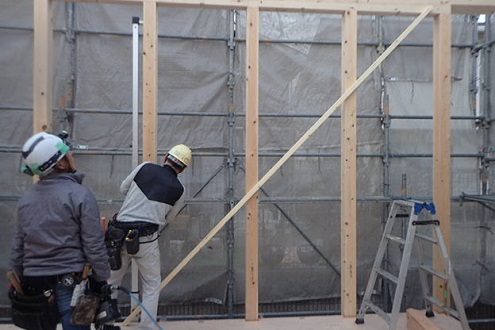 木材がちゃんと垂直になるように測り微調整をします。