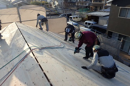 屋根の合板を貼っています。