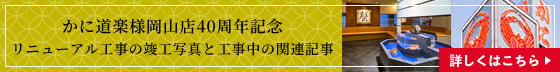 かに道楽・常務取締役の今津氏は、秦建設との思い出をこう語る。「今回、岡山店の30周年を機にリニューアルをお願いしました。秦社長とは、それこそ私の父の代からのお付き合いですね。思い出はいろいろありますが以前、夏場に冷凍庫が壊れてパニックになったことがあります。その時も夜中にすぐ電気屋さんを手配してくれて、夜明け前に秦社長が自ら駆け付けてくれました。今回の工事でも、こちらが言わなくてもとことん納得がいくまで品質を追求してくださって…。私はそれを『秦建設のスタンダード』と呼んでいますが、皆さん礼儀もきちんとしていて、とにかく安心できる仕事ぶりでした」。