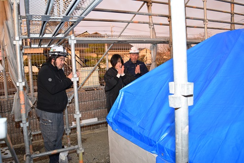 今日の日が無事に迎えられたことに感謝し、棟梁や職人さんたちの作業の安全、