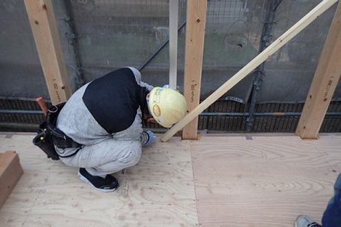 木材がちゃんと垂直になるように測り微調整をします。
