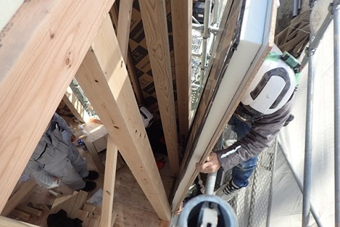 屋根の合板を貼っています。
