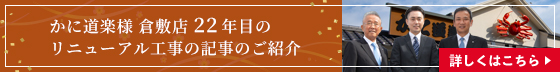 かに道楽・常務取締役の今津氏は、秦建設との思い出をこう語る。「今回、岡山店の30周年を機にリニューアルをお願いしました。秦社長とは、それこそ私の父の代からのお付き合いですね。思い出はいろいろありますが以前、夏場に冷凍庫が壊れてパニックになったことがあります。その時も夜中にすぐ電気屋さんを手配してくれて、夜明け前に秦社長が自ら駆け付けてくれました。今回の工事でも、こちらが言わなくてもとことん納得がいくまで品質を追求してくださって…。私はそれを『秦建設のスタンダード』と呼んでいますが、皆さん礼儀もきちんとしていて、とにかく安心できる仕事ぶりでした」。